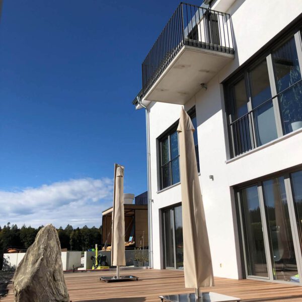 Der Aussenbereich der LOCATION B hat Einiges zu bieten. Auf der 40m2 grossen Dachterrasse haben Sie einen wunderschönen Blick ins Grüne und den daran liegenden Wald. Frühling, Sommer, Herbst oder Winter – jede Jahreszeit beschenkt Sie mit einem neuen individuellen Blick in die Natur Baierbrunns. Atmen Sie tief durch und geniessen die Ruhe.