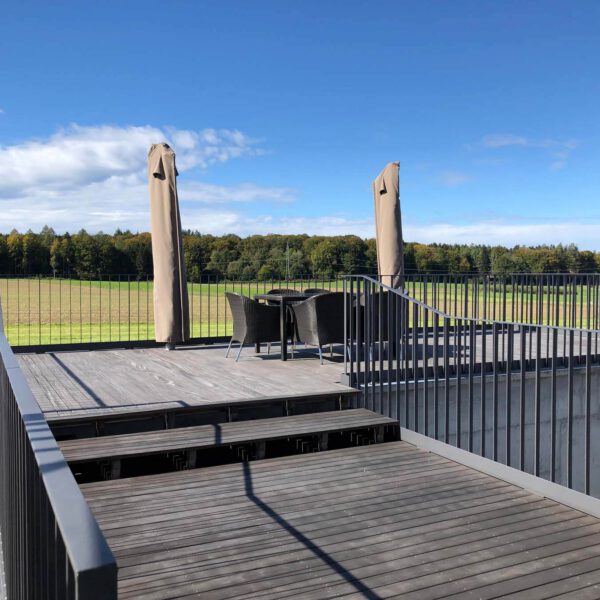 Weiter geht es über eine moderne, außenliegende Wendeltreppe gelangen auf das großzügig angelegte Sonnendeck der LOCATION B. Auch wir sind immer auf der Suche nach Veränderung, die Gutes bringt. Somit wird im Frühling 2023 ein Naturpool mit Außenbar und einem ökologisch angelegten Strandabschnitt entstehen. Bleiben Sie gespannt.