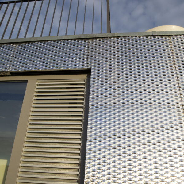 - Quadratischer Stahlkubus, rundherum elektrisch abdunkelbar